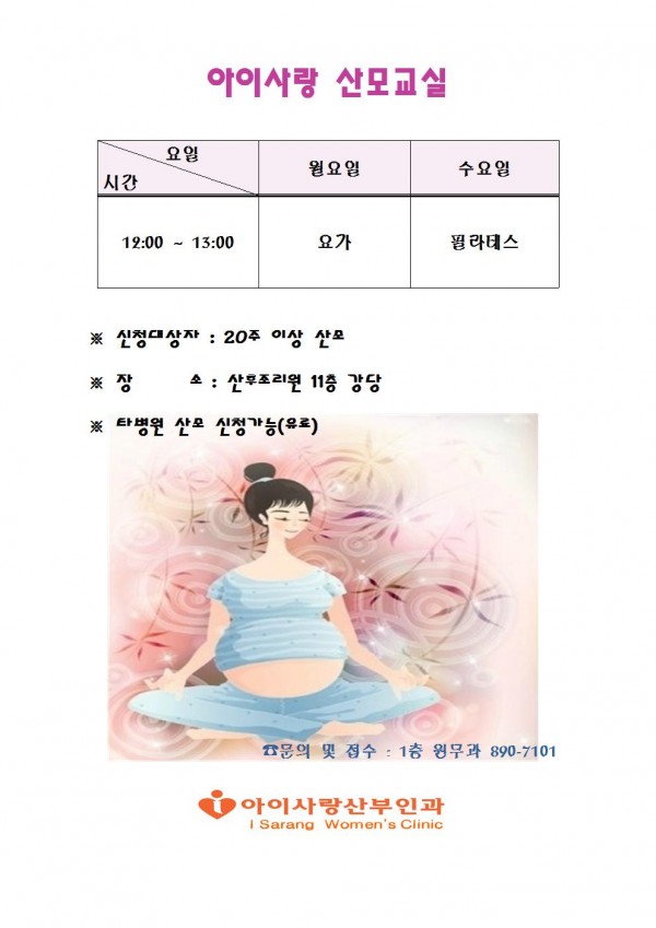 문의사항 : 아이사랑산부인과 1층 원무과 051-890-7101