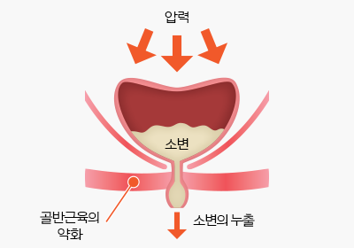 기침, 재채기 또는 운동 등 자세를 바꿀 때 소변을 흘린다.